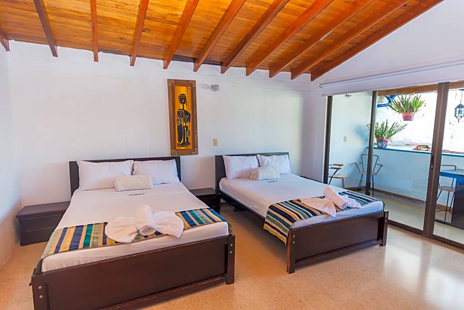 This family room is consisted of of a flat-screen TV with cable channels and a private bathroom. The unit has 3 beds.